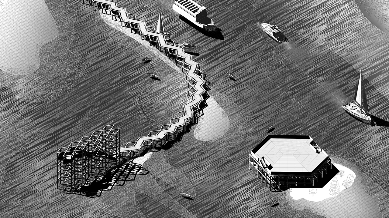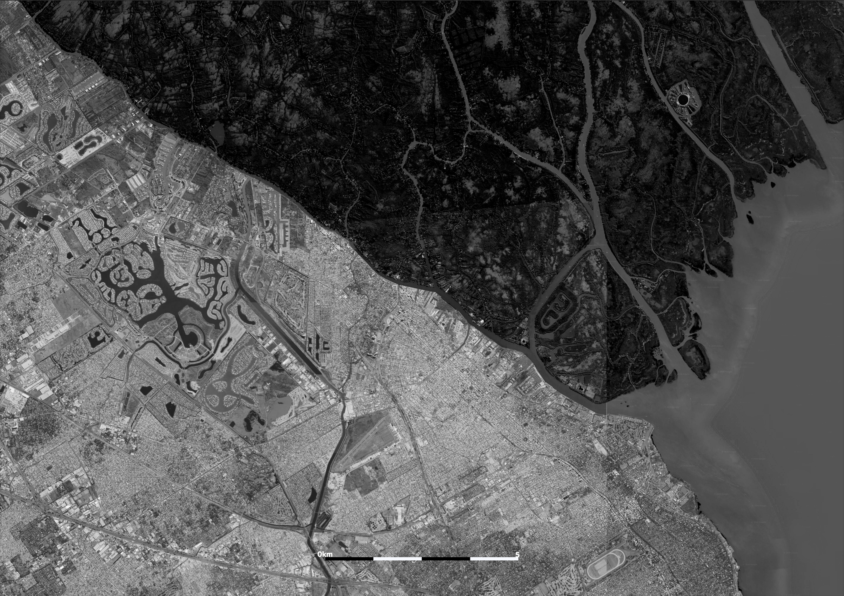 Parallèlement, à l’échelle territoriale, nous avons proposé un plan d’aménagement pour requalifier la côte Nord de Buenos Aires. Il s’agit de la création d’une série de parc linéaire et d’un chenal côtier venant connecter Buenos Aires au delta tout en lissant le trait de côte pour retrouver une dérive littorale. Le projet se divise en trois grandes zones ayant un traitement différent en fonction de l’état de la côte. Pour la plus urbaine il s’agit de congestionner l’expansion incontrôlée de la ville sur son fleuve. Pour la partie métropolitaine le parti-pris a été de sanctuariser les plages existantes et d’ intervenir ponctuellement. Enfin pour la dernière partie, la porte du delta, nous proposons une station fluviale en lien à la côte nautique existante, s’intégrant dans le futur développement du delta en s’inscrivant dans le système de cluster insulaire tout en désengorgeant l’unique point d’accès actuel qu’est le port de Tigre.