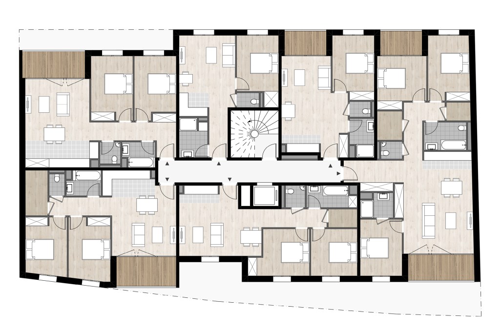Projet de construction d’un immeuble de logement à Suresnes. Le bâtiment est rendu accessible par les différents niveaux du site. Une attention a été porté dans la définition des volumes et des différentes matérialités pour favoriser l’insertion du bâtiment dans le tissu urbain.